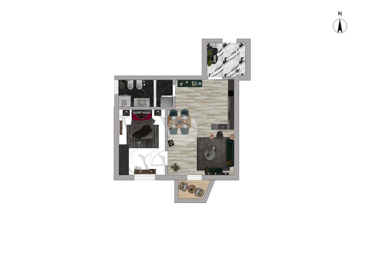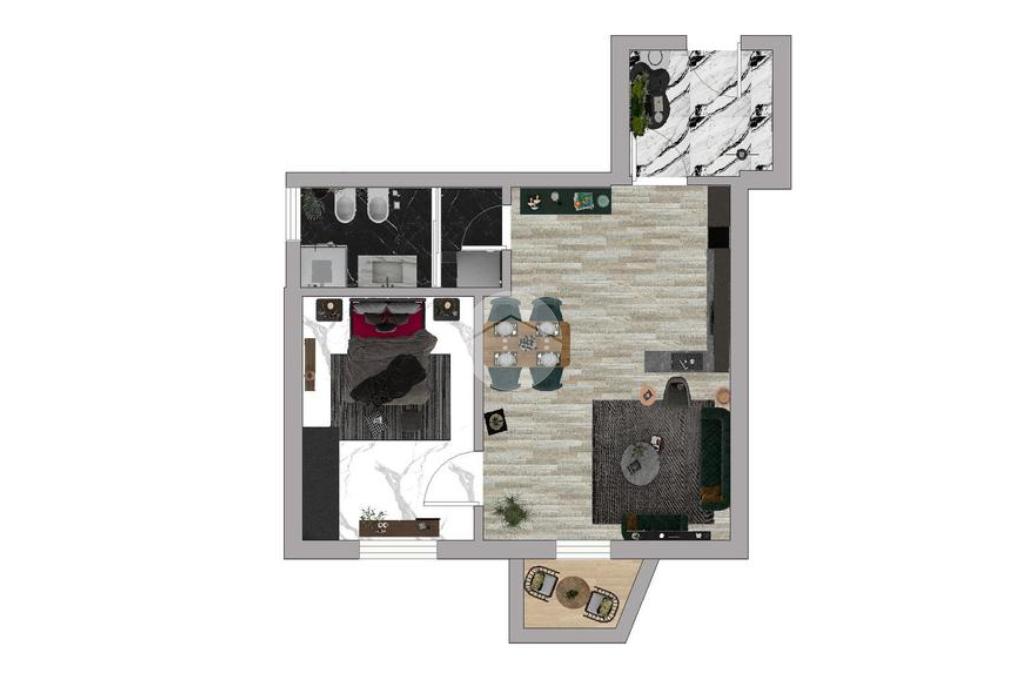 L'appartamento risulta così composto: Ingresso su ampio soggiorno con cucina a vista e balcone, un'ampia camera matrimoniale finestrata e bagno con box doccia.