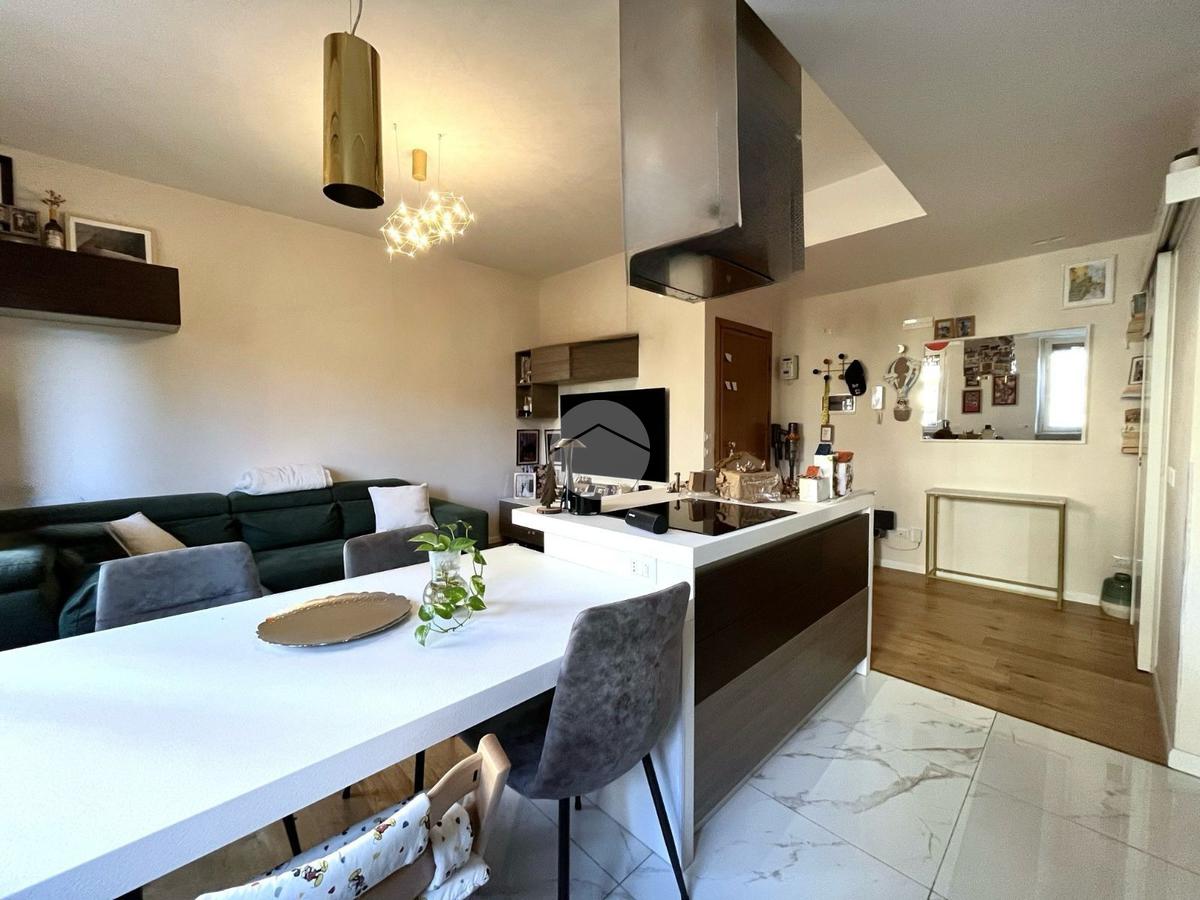 Ampio soggiorno con cucina a vista, perfetto per momenti di convivialità e relax, camera matrimoniale spaziosa, dotata di un balcone privato che affaccia sul giardino condominiale, dove poter godere di piacevoli momenti all'aria aperta, e un bagno moderno e finestrato, completo di un ampio box doccia per il massimo del comfort.